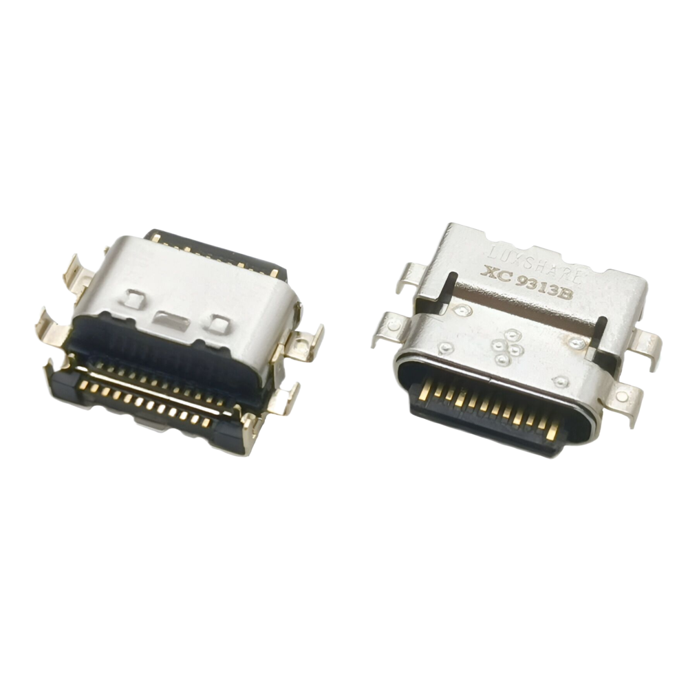 TYPE C 24P母座 板上雙貼SMT 舍片外漏 帶雙耳螺絲孔 CH=1.6MM L=7.55MM(華碩ROG2、3、5代游戲手機尾插)